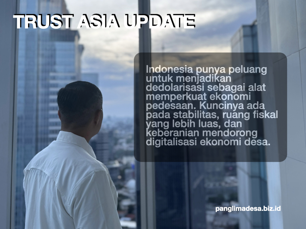 Indonesia punya peluang untuk menjadikan dedolarisasi sebagai alat memperkuat ekonomi pedesaan. Kuncinya ada pada stabilitas, ruang fiskal yang lebih luas, dan keberanian mendorong digitalisasi ekonomi desa. Jika langkah ini konsisten, desa bisa menjadi pusat pertumbuhan baru dalam arsitektur ekonomi Indonesia, bukan lagi sekadar objek kebijakan dari jauh.