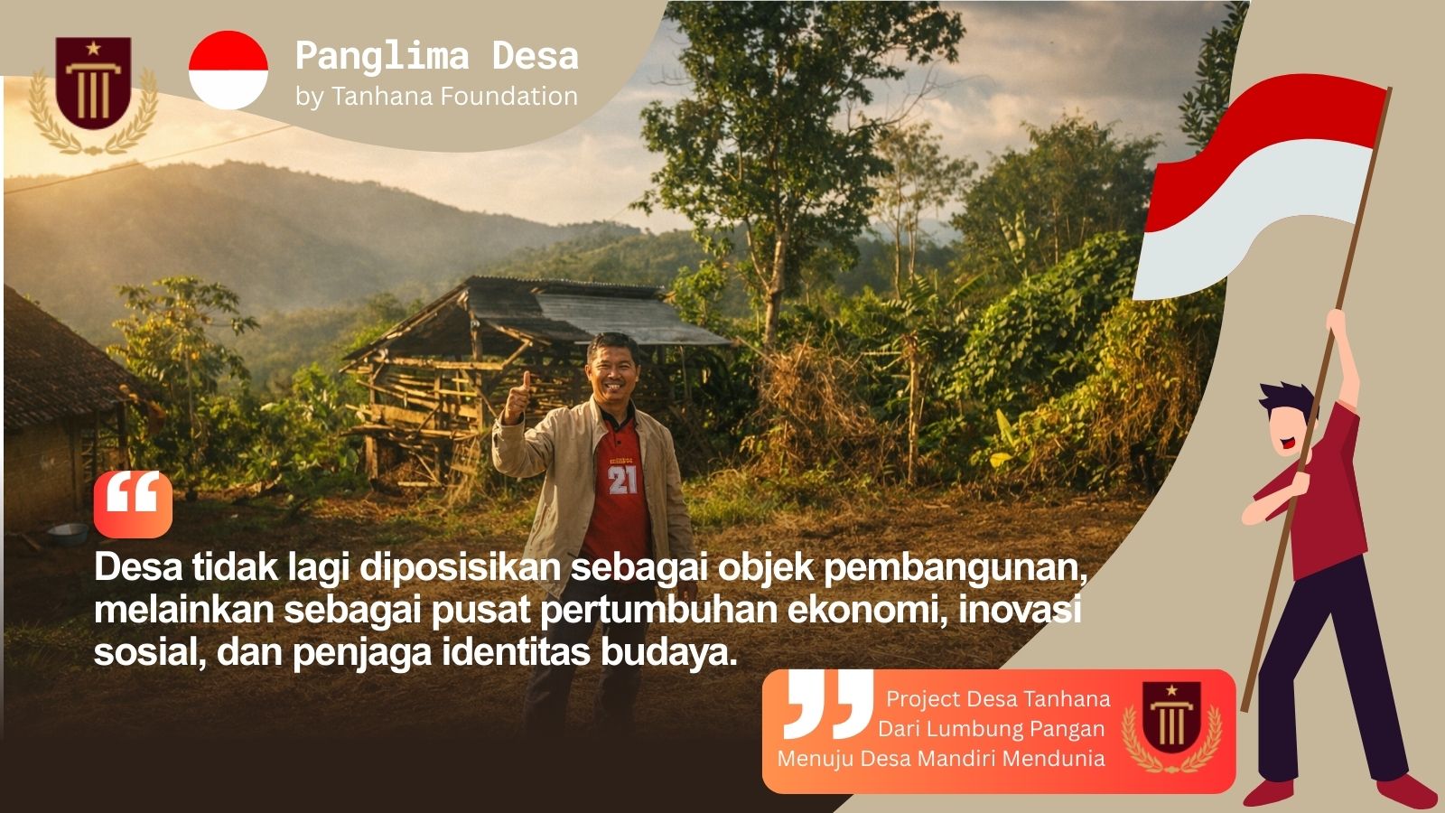 Apa yang dilakukan TANHANA FOUNDATION melalui PANGLIMA DESA pada dasarnya adalah mengembalikan peran strategis desa dalam pembangunan nasional. Ketika desa kuat, ketahanan nasional ikut kokoh. Ketika pangan stabil, ekonomi rakyat bergerak. Ketika UMKM naik kelas, lapangan kerja tercipta. Ketika digitalisasi berjalan, transparansi dan efisiensi meningkat. Ketika wisata berbasis budaya berkembang, identitas tetap terjaga.