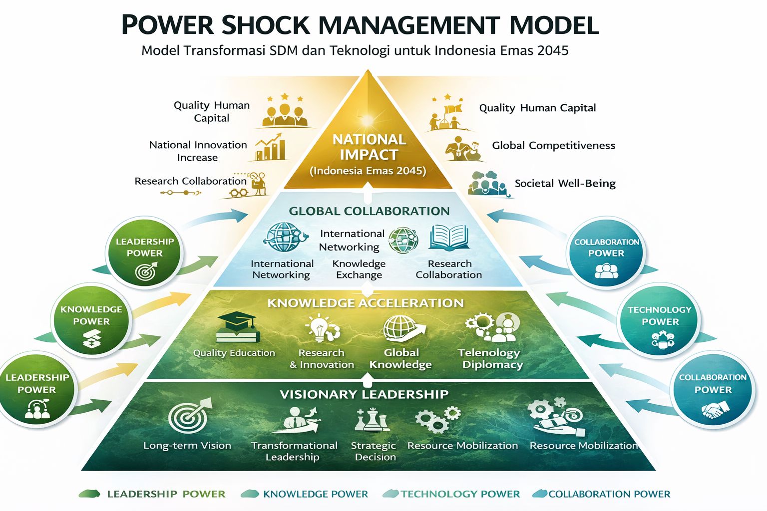 Ketika kelima pilar ini menyala bersama, hasilnya bukan perubahan satu per satu—melainkan lompatan daya saing yang eksponensial. Inilah yang disebut Power Shock.